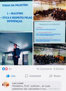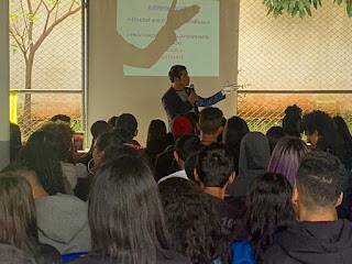 Falou para centenas de pais dos alunos sobre "como identificar se o filho sofre 'bullying'", violência doméstica: causas e consequências".